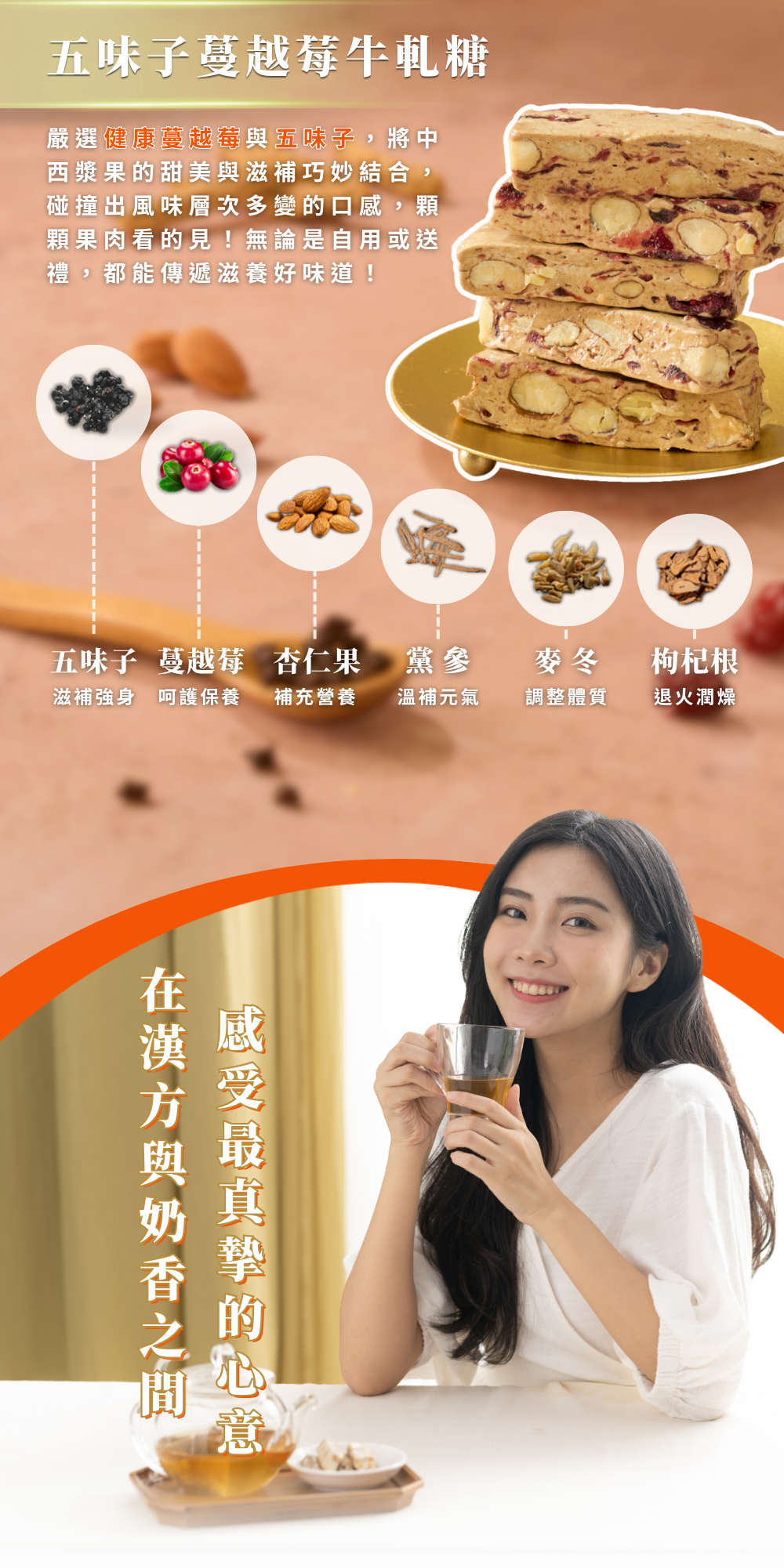 • 五味子蔓越莓-滋補強身×酸甜果韻,五種口感五福臨門