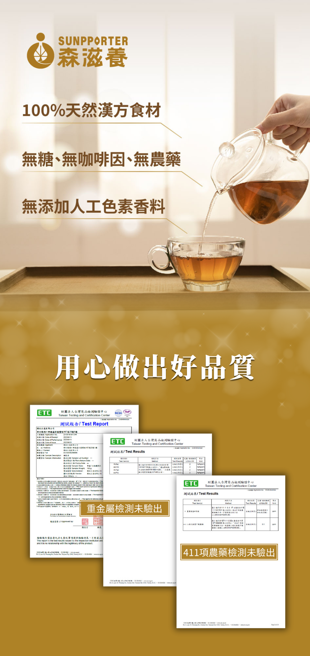 • 100%天然漢方食材、無添加、無咖啡因、熱量近乎於0
