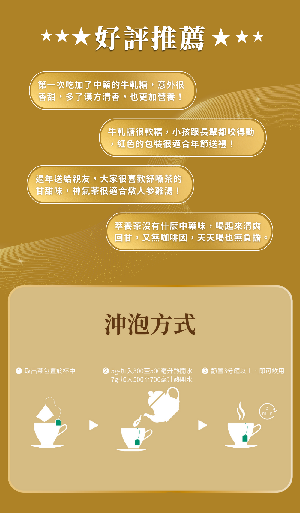 【嚴選兩款暢銷萃養茶+漢方牛軋糖】